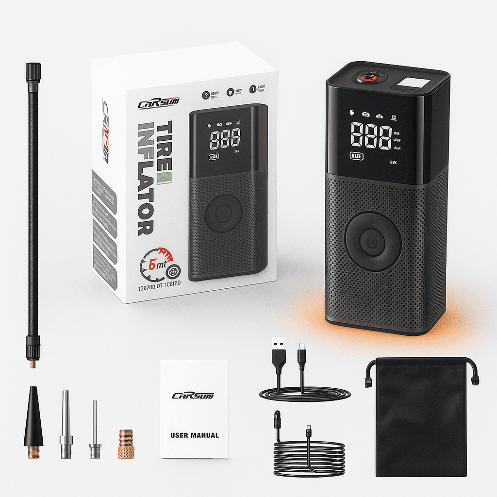Inflation Speed | < 5 min (flat tire) | 35 sec (25→36 PSI on 195/65R15), 5× faster | Same as Pro |
