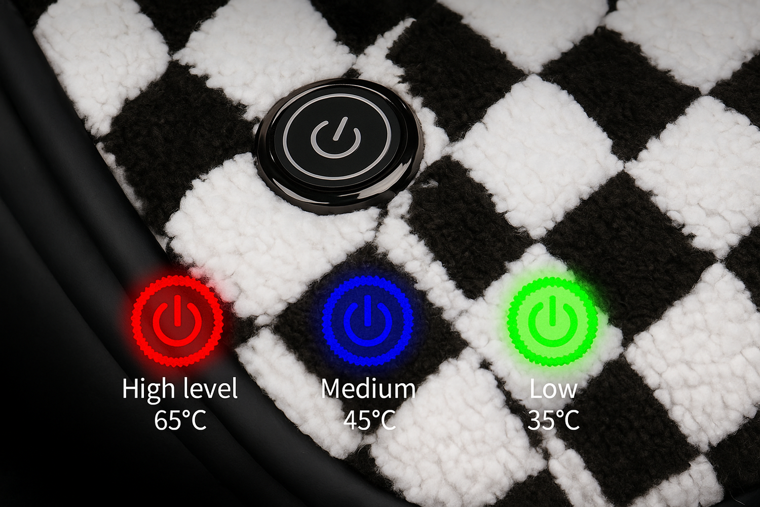 🔥 Triple Heat Levels – 65℃ High for instant warmth, 45℃ Medium for balanced comfort, 35℃ Low for gentle long drives.