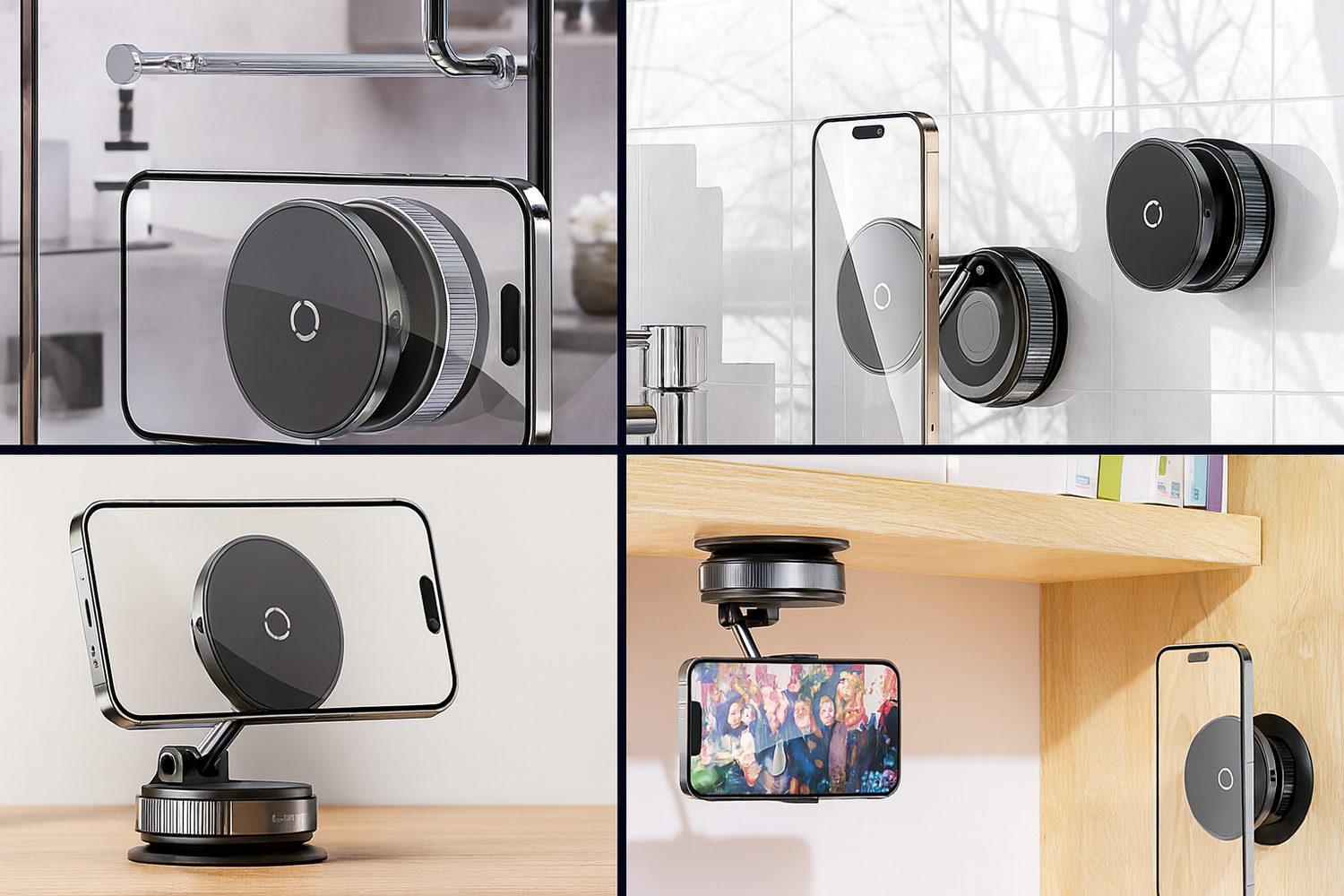 From glass walls to tiled kitchens, office desks to wooden shelves—our vacuum suction + N52 magnetic lock ensures rock-solid stability anywhere.
