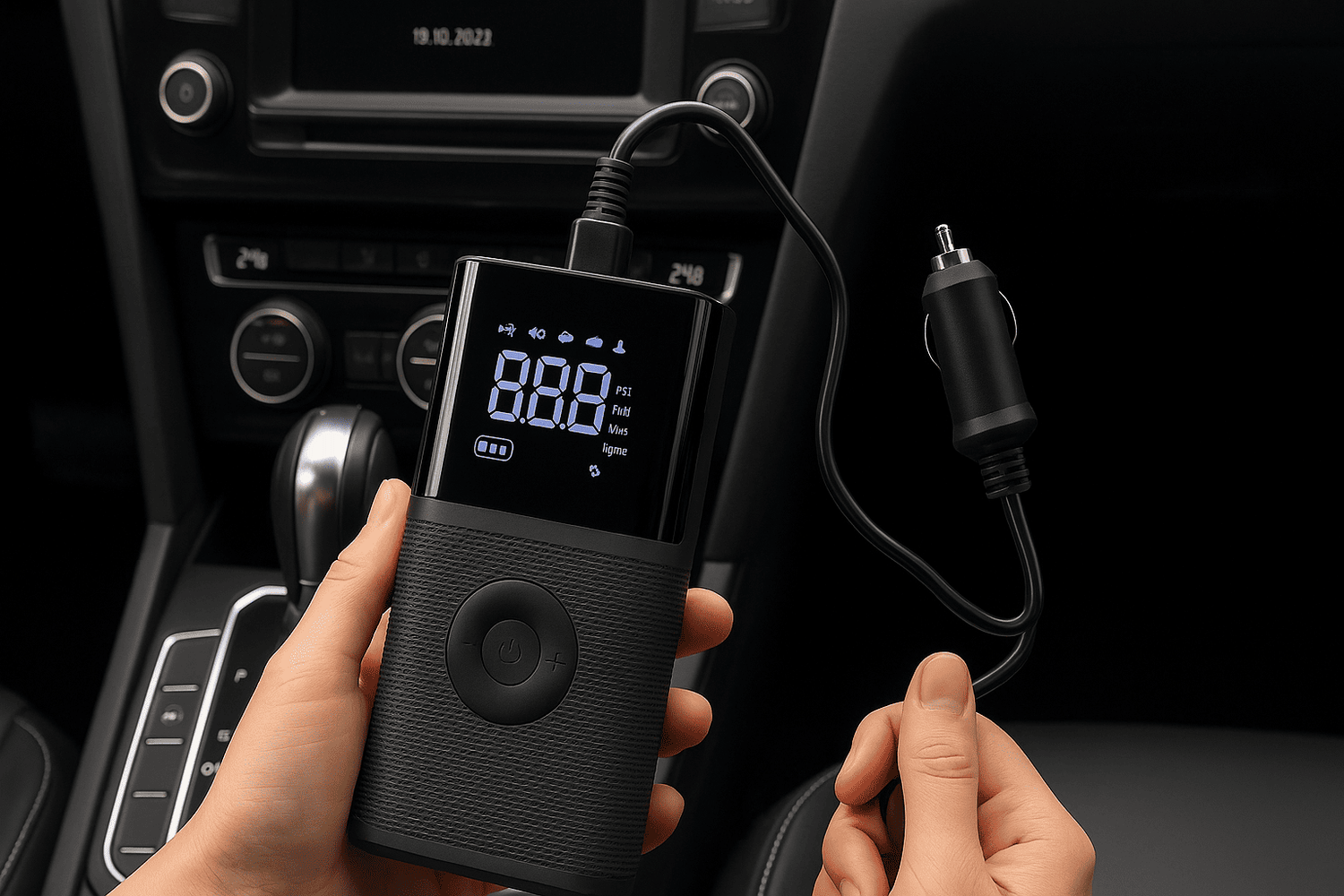 If the battery runs low, simply plug into your car’s cigarette lighter and keep going — no waiting, no stress. A true advantage for road trips and emergencies.